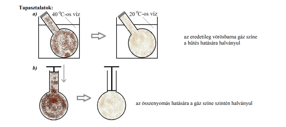 2NO2 ⇌ N2O4 a dimerizáció (az egyesülés) exoterm, az N2O4 bomlása endoterm