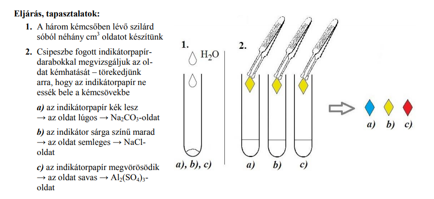 a) Na2CO3 (szóda / sziksó): erős lúg és gyenge sav sója → lúgosan hidrolizál, az oldat lúgos kémhatású